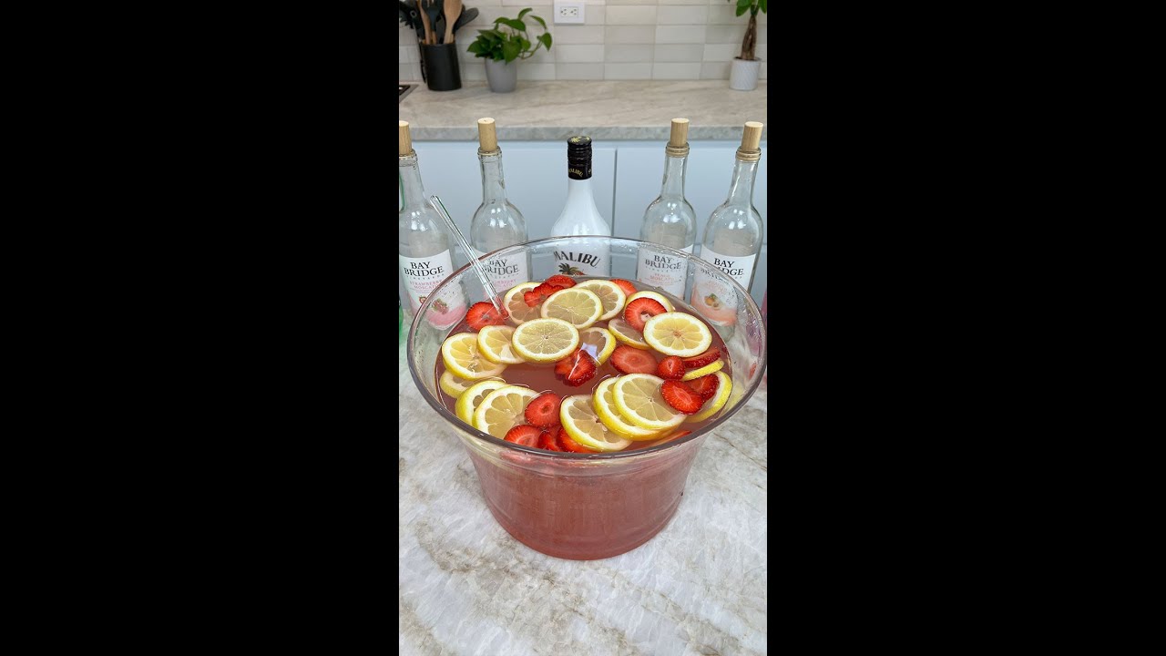 #tipsybartender #wine #moscato #cocktail #drink #run #mango #strawberry #lemonSummertime Pink Lemonade Sangria