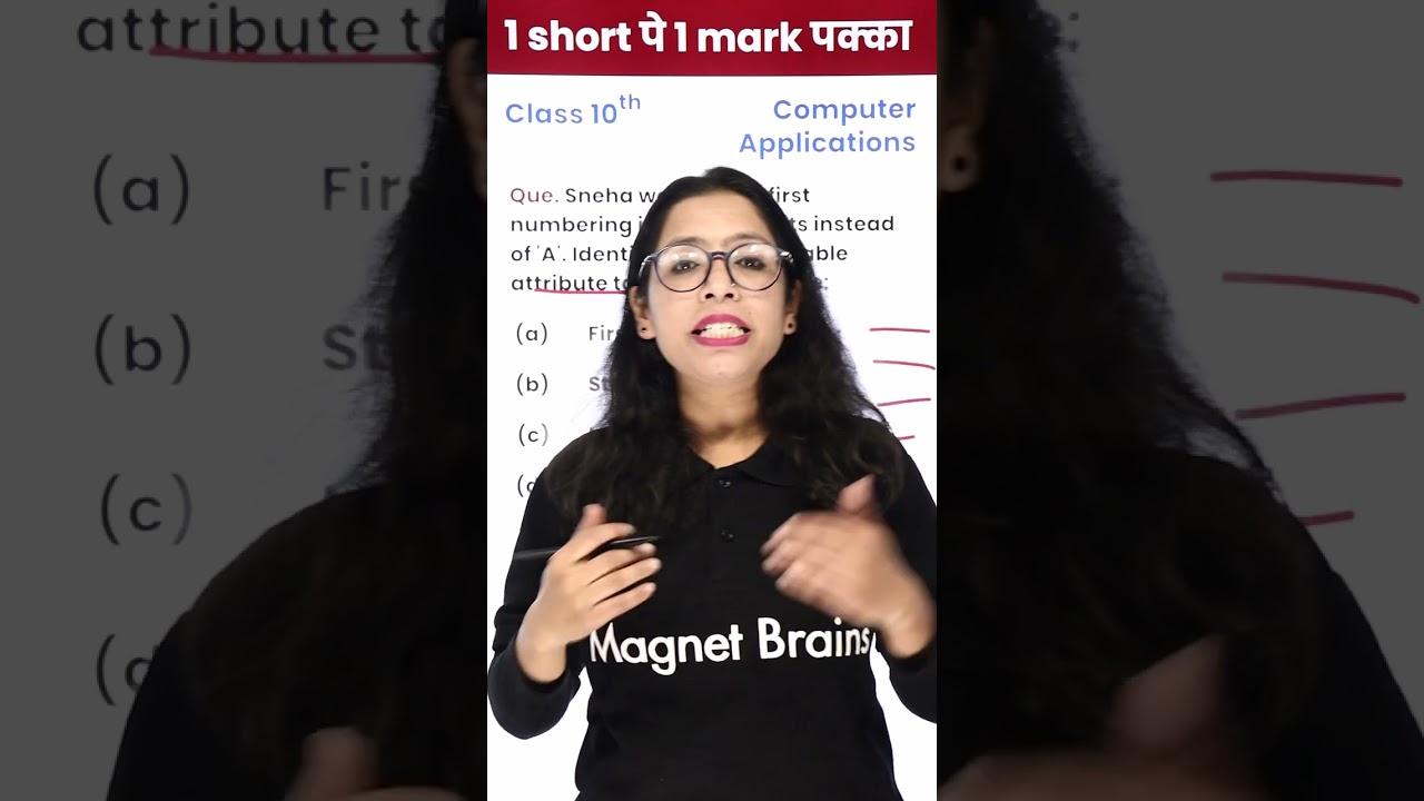 identify the most suitable attitude to specify 10th computer application 1video 1mark पक्का for board exam 1 video से 1 mark पक्का in board exam class 10 1 video से 1 mark पक्का class 10 computer applications class 10 computer application chapter 2 class 10 computer applications chapter 3 class 10 computer applications chapter 5 class 10 computer applications magnet brains class 10 computer application chapter 1 magnet brains #shorts #magnetbrains
